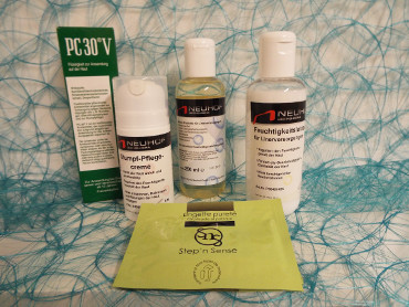 Das Reinigungsmittel für Stumpf und Liner enthält, ebenso wie die Feuchtigkeitslotion, keinerlei Duftstoffe, oder Alkohole.